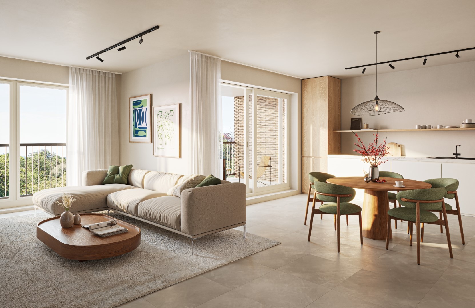 De appartementen zijn voorzien van de nieuwste technieken voor verwarming, koeling en ventilatie.