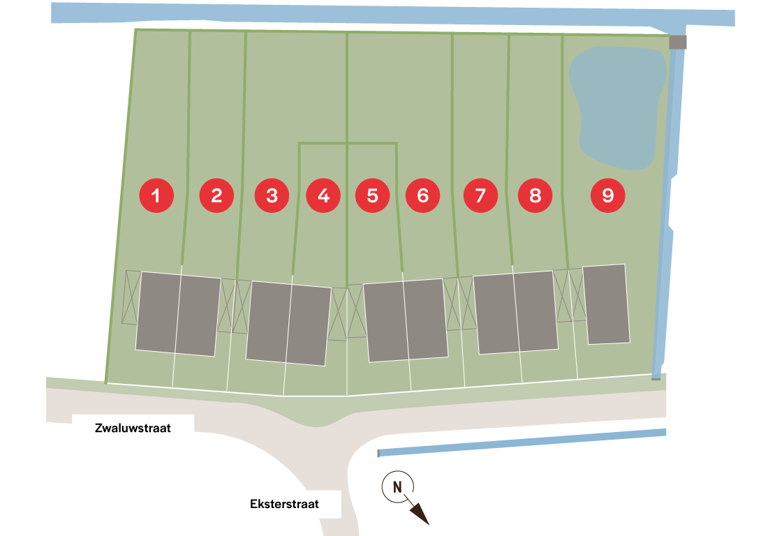 De perceelgrootte varieert van 490 m² tot 1.230 m² en deze ruime percelen combineren een mooie straatbreedte met een aanzienlijke diepte, waardoor je hier volop kan genieten van een ruime, perfect zuid georiënteerde woning met ruime tuin.