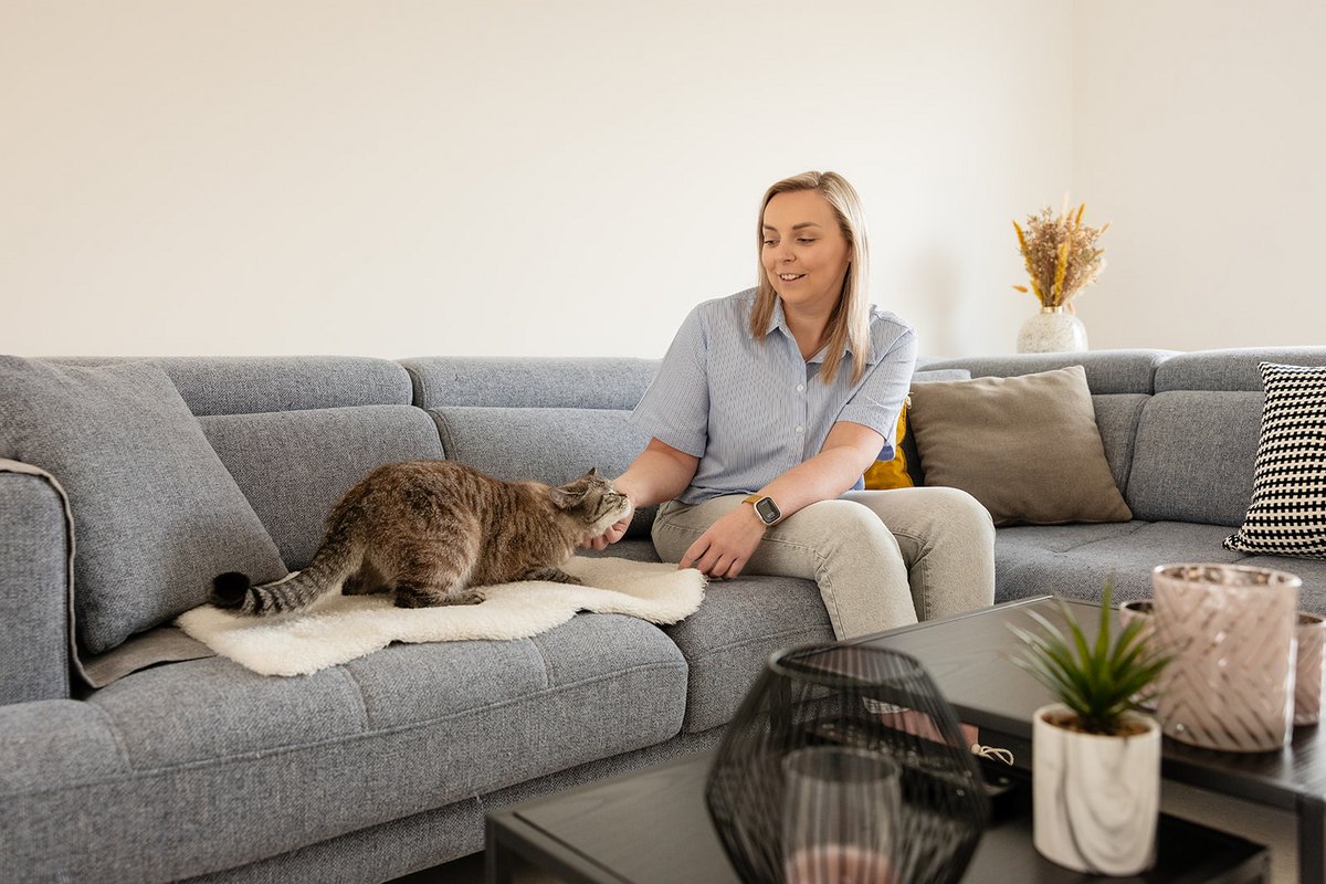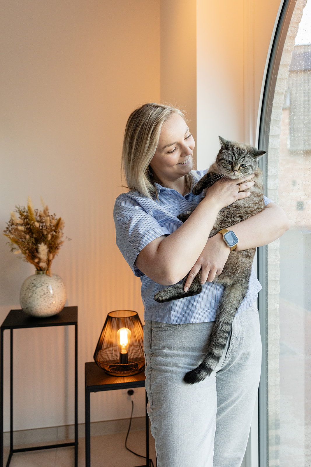 Eline woont ondertussen een drietal maanden in haar nieuwe woning samen met kat Maurice. Ze voelde zich vanaf dag één thuis. “Mijn zetel is momenteel mijn favoriete plekje. Als ik ’s avonds laat thuis kom van mijn werk, kan hier nog even ontspannen voor ik in bed kruip. Maar ik denk wel dat naar de zomer toe de tuin mijn nieuwe favoriete plek wordt.”