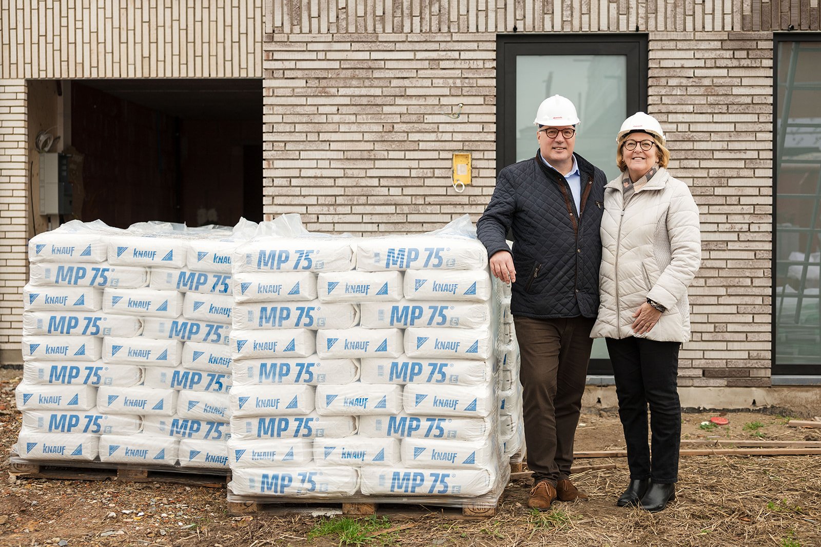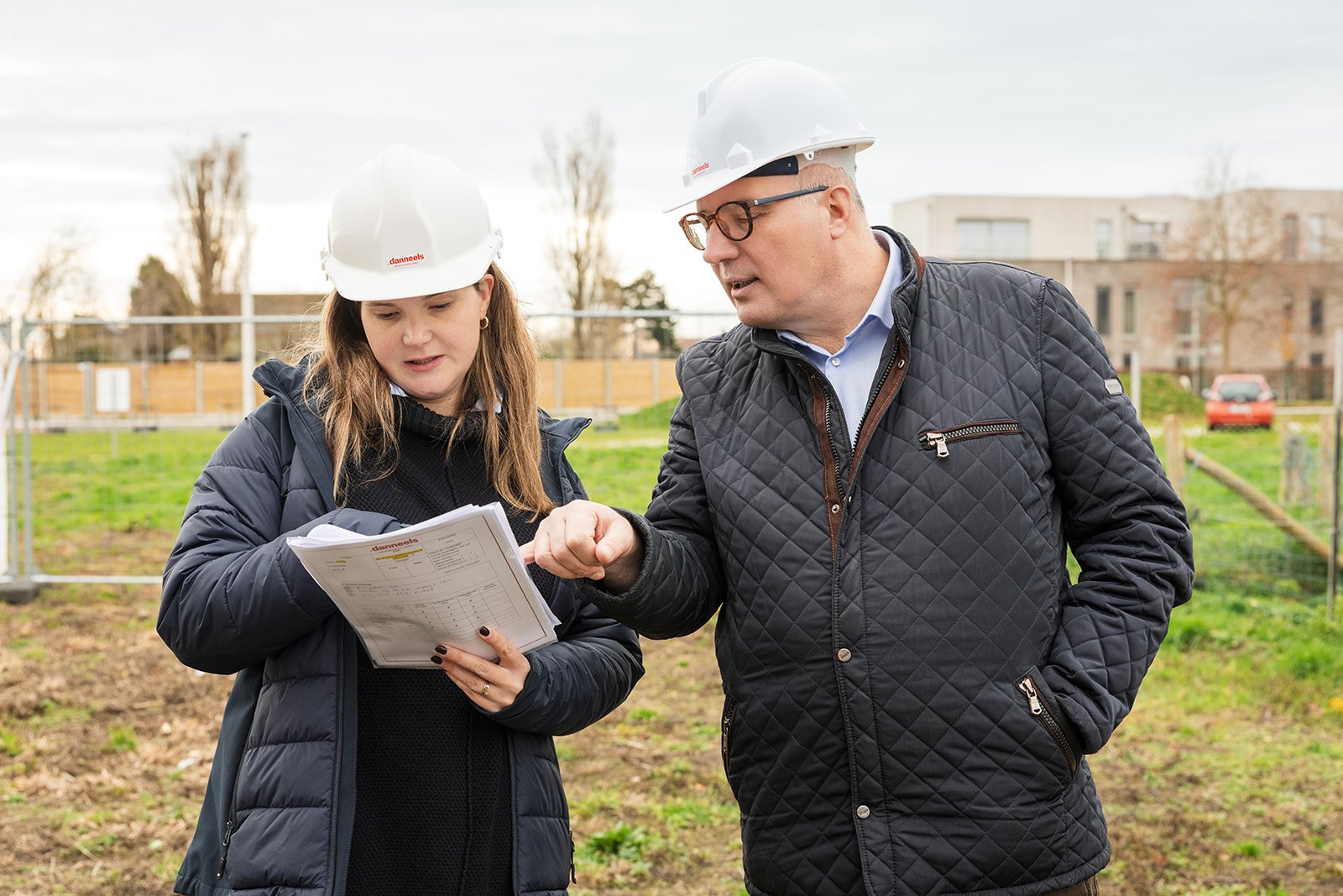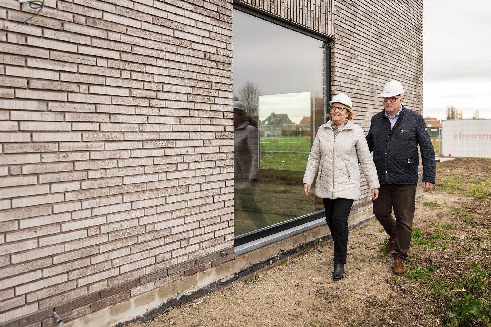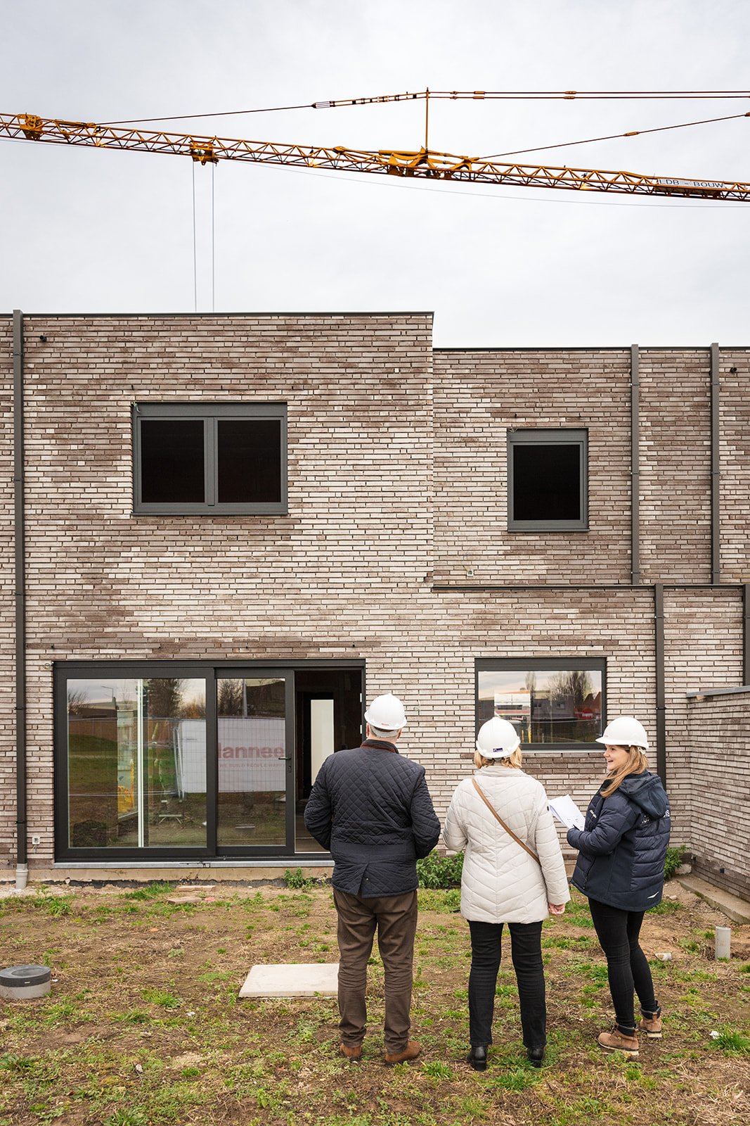 Voor dit interview ontmoeten we Gunther en Heidi samen met klantenbegeleidster Louisa tijdens hun eerste werfbezoek. Desondanks dat ze regelmatig eens komen kijken naar de woning, is dit de eerste keer dat ze hem vanbinnen zien. “Het is heel fijn om hier rond te kunnen wandelen. Zo veel lichtinval en een mooi zicht op de tuin”, glimlacht Heidi.