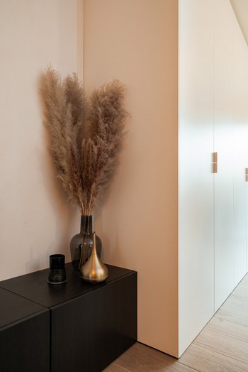 Kim: “Ik ben professioneel actief met interieurvormgeving en in de kijkwoning kon ik mijn hele wenslijstje afvinken: een ruime dressing in de master bedroom, een berging waar veel in kan en een mooi terras als verlengstuk van onze leefruimte."