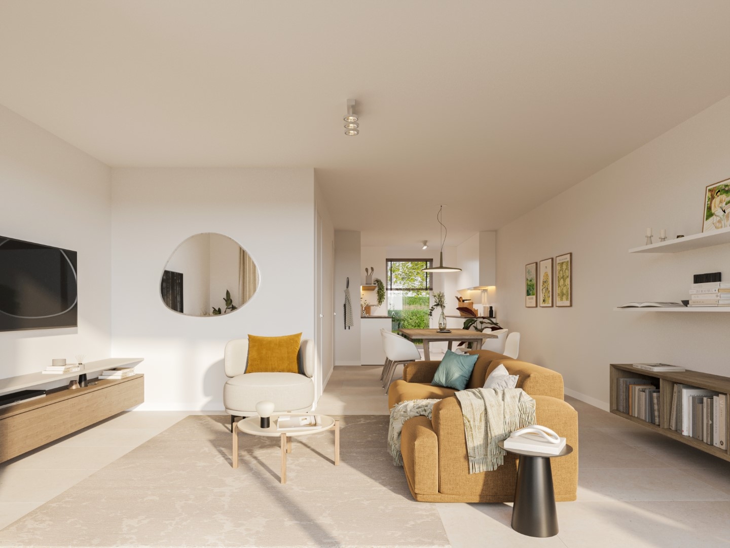 Een geothermische warmtepomp, vloerverwarming, zonnepanelen en een ventilatiesysteem met warmterecuperatie zijn voorzien. Dat scheelt flink op je energiefactuur.