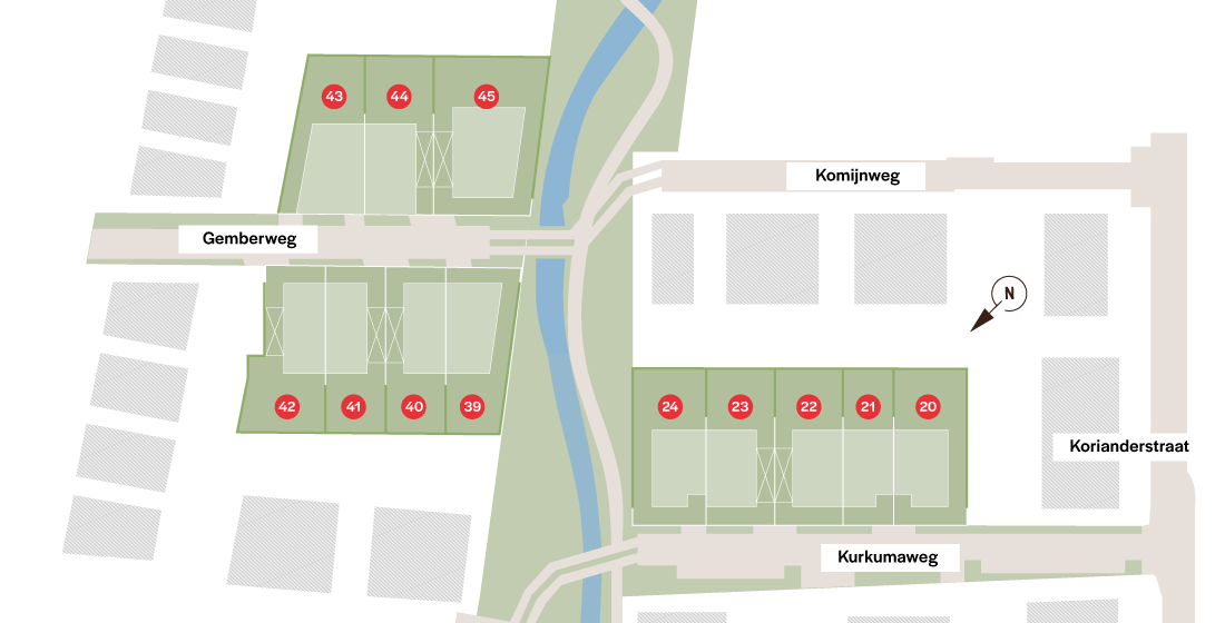 - Toekomstgerichte woonomgeving met groenpark met vijver, wadi's, wandel- en fietspaden