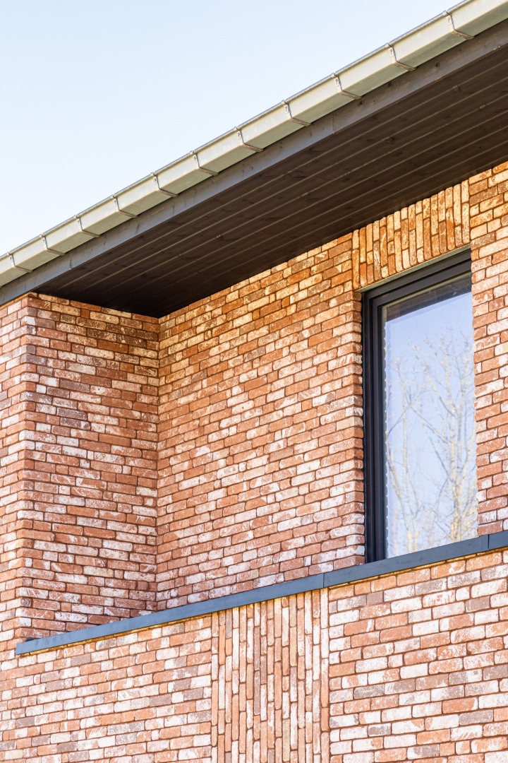 Deze moderne nieuwbouwwoning met hellend dak werd gebouwd op lot 24 aan de Lange Munte in Kortrijk.