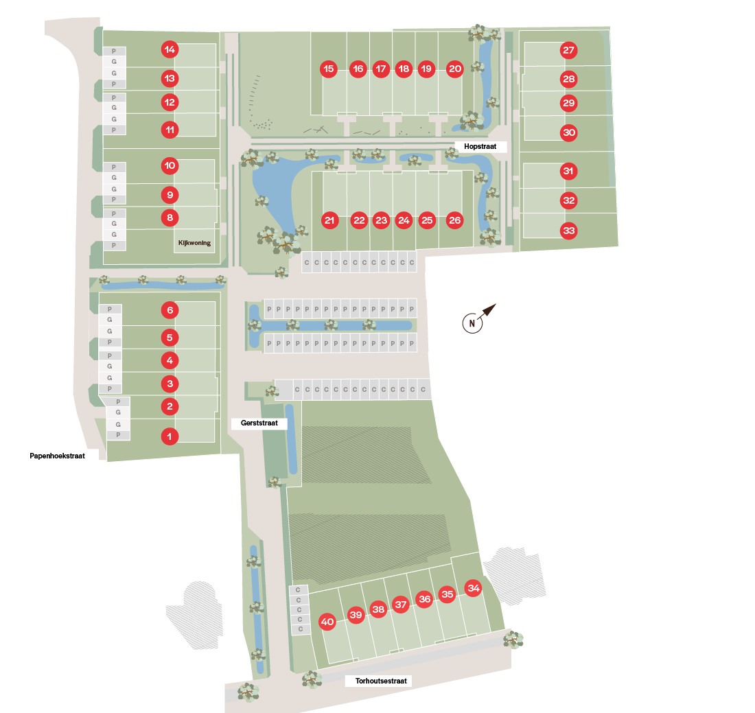 In onze nieuwe woonwijk aan de Torhoutsestraat woon je rustig, in een verkeersluwe straat met zicht op het landelijke Ruddervoorde.