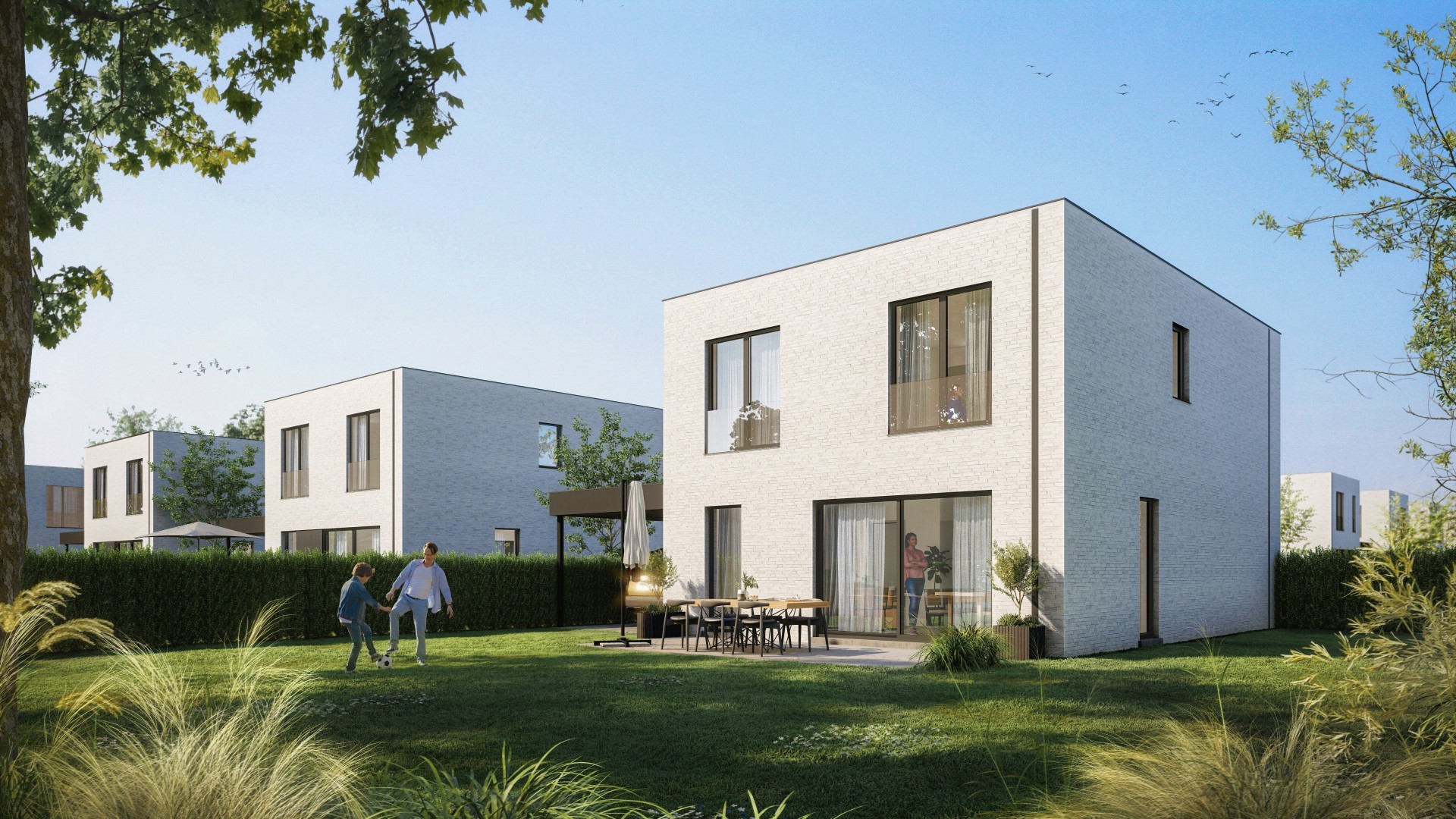 Bijna- afgewerkte nieuwbouwvilla's in groene wijk