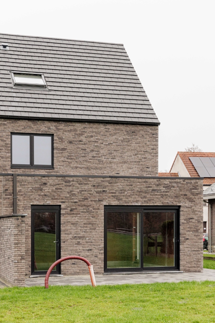 Op het lot 6, een mooi perceel van 561 m² met een ideale west oriëntatie, bouwden we een halfopen bebouwing met maar liefst 199 m² woonruimte.
