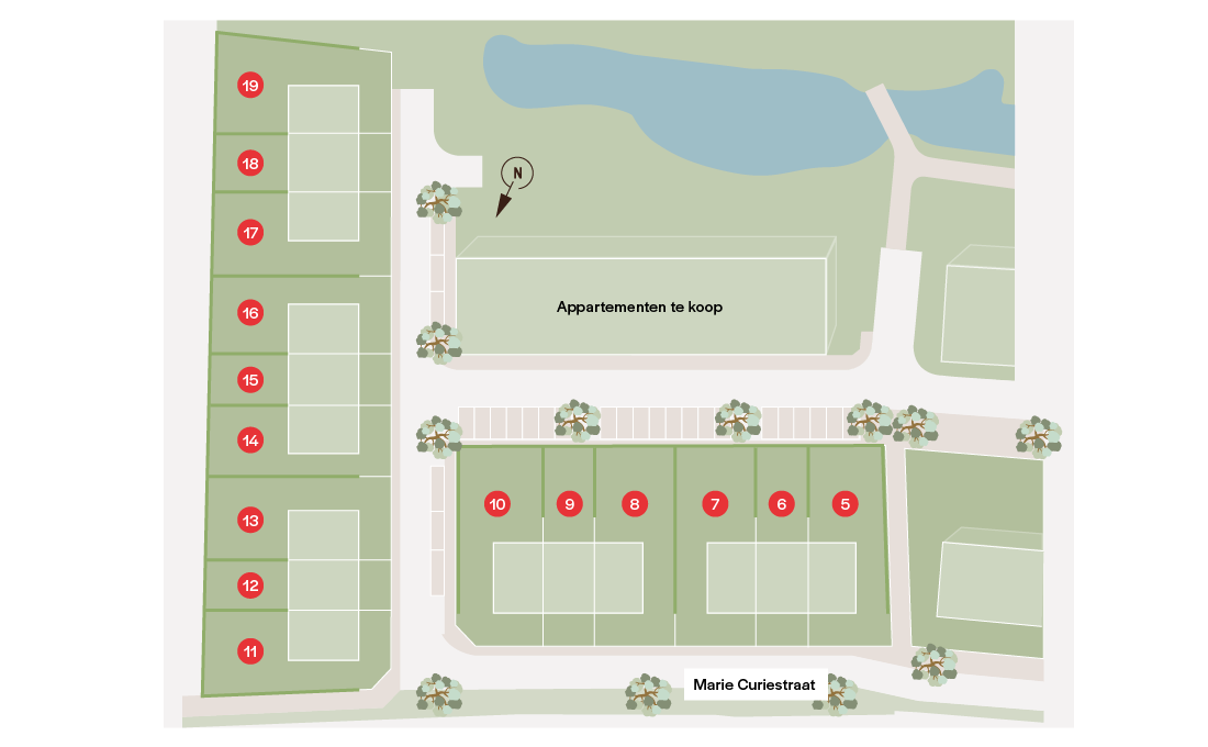 | 19 | 382 m2 | 195 m2 | Halfopen | 4 | 30 | Verkocht |