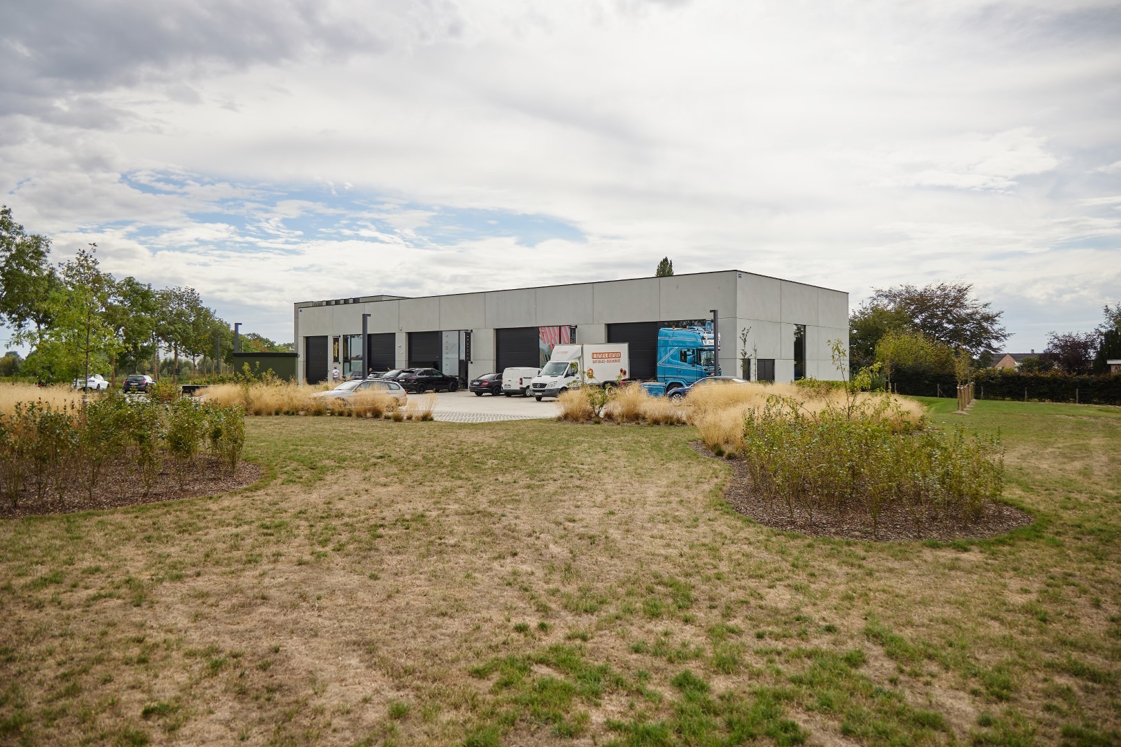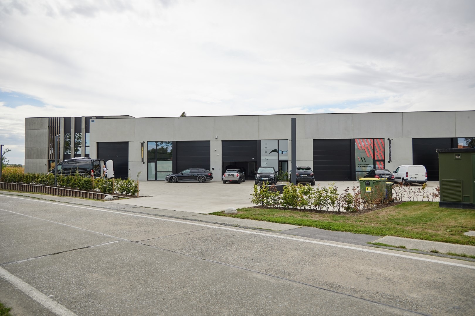 Deze polyvalente units werden uitgerust met een automatische sectionaalpoort en een toegangsdeur met ruime glaspartij.